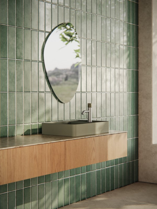 With a streamlined, sculptural profile, this progressive basin mixer blends Lustre Bronze’s distinctive depth with Clay concrete, a pairing designed for contemporary interiors.